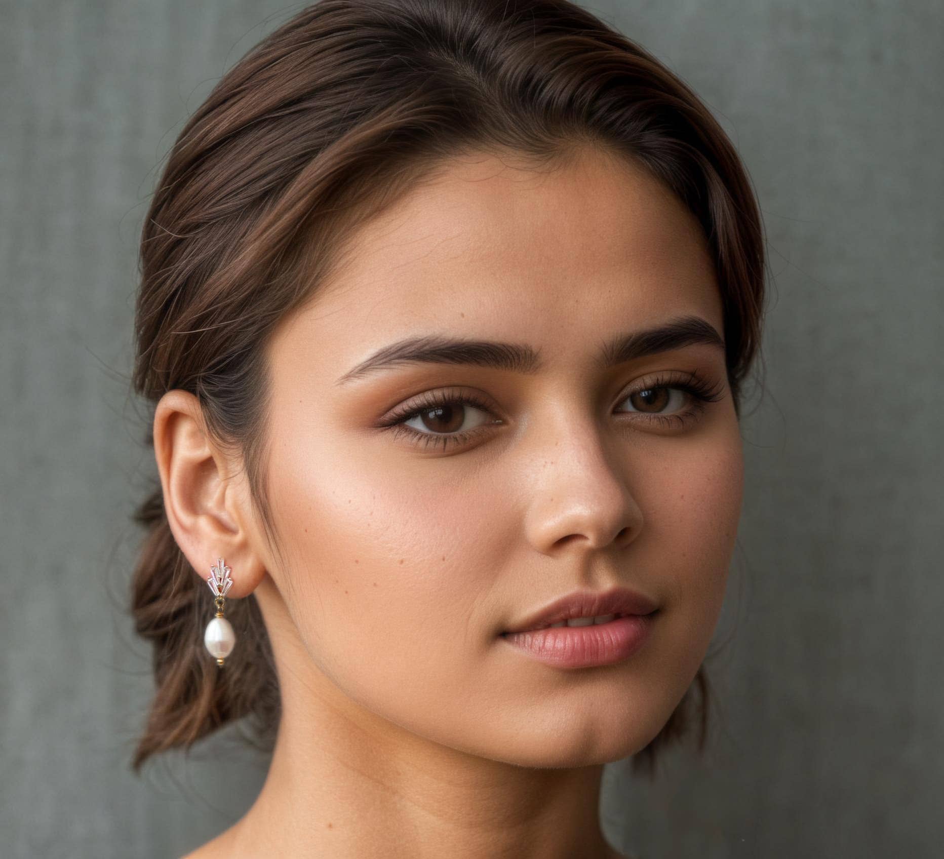The drop and settings are solid brass. The earrings have a post fastening with butterfly backs. The posts are made of surgical steel. The length of these earrings is around an inch and a half (35mm) with the pearl designed to sit around an inch below the earlobe.