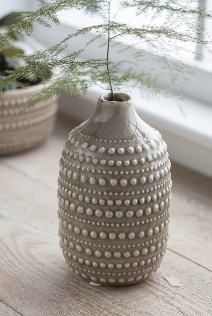 We're getting definite Italian vibes from our new ceramic stone coloured vase. Beautifully handmade with a tactile bobbled design.