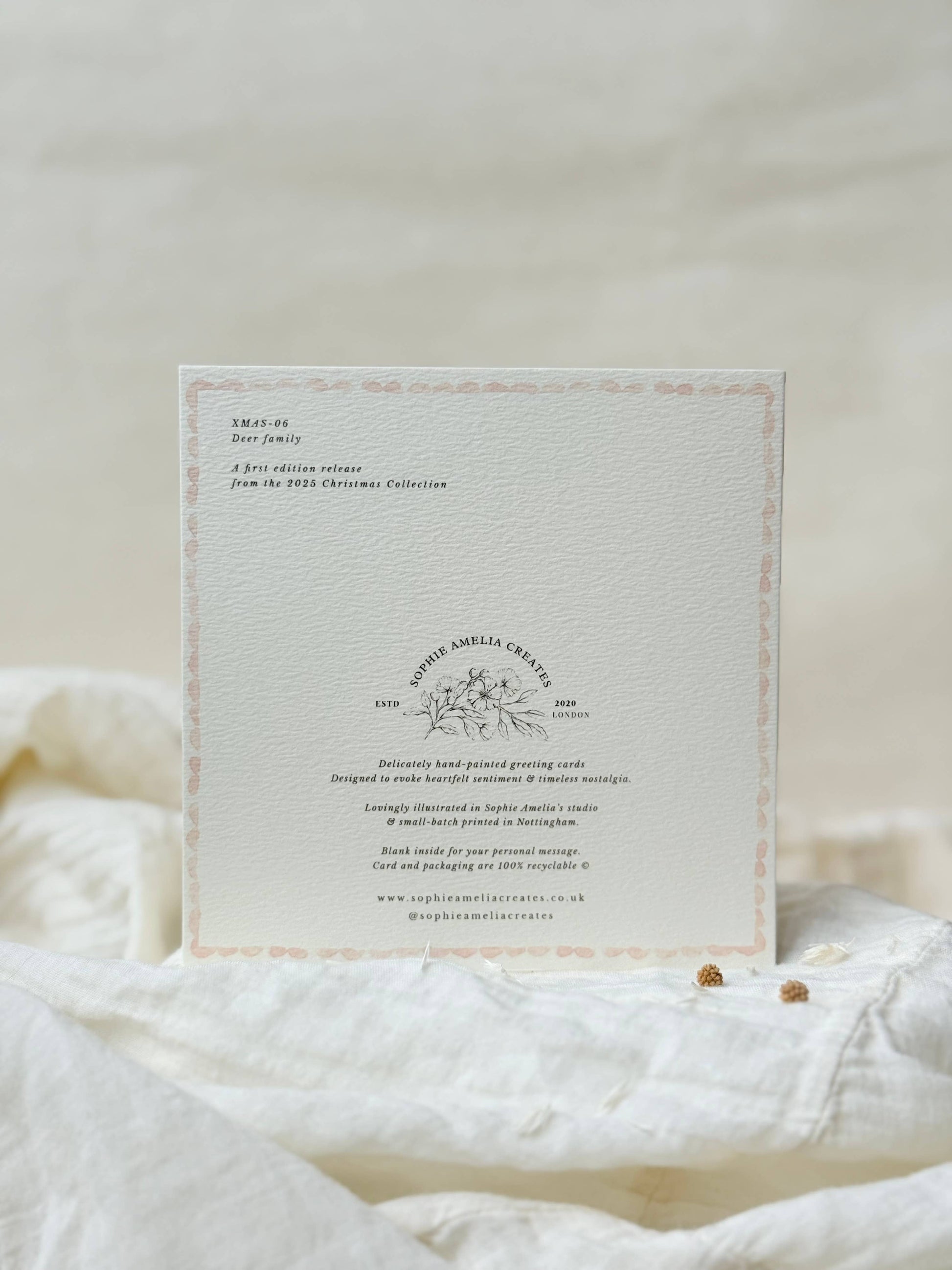 Lovingly hand-painted watercolour illustration; small batch printed on antique white, soft grain card.