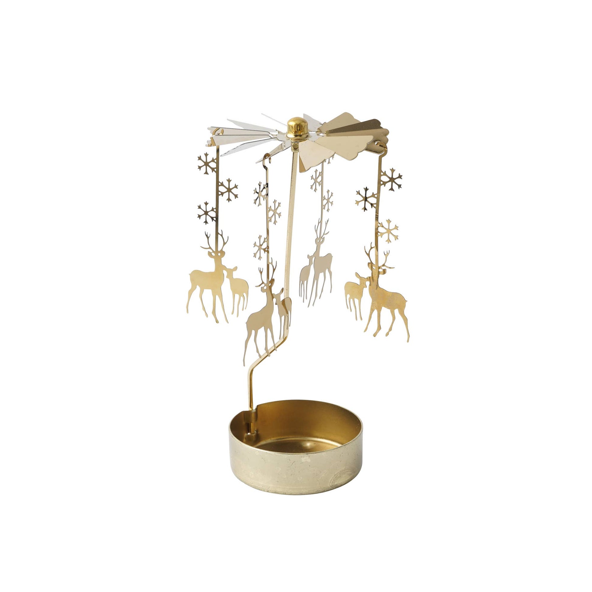 Add a touch of elegance and magic to your space with our stunning gold metal spinning tealight holder. This beautifully crafted candle holder creates a mesmerising display of light and movement, perfect for enhancing the ambiance of any room or special occasion. Made from high-quality gold metal, this spinning tealight holder features intricate detailing and a polished finish, adding a luxurious touch to your home décor. Once lit, the heat from the tealight candle gently spins the attached decorations, creating a dynamic and soothing display of light and motion. A Thoughtful Gift | Presented in a stylish gift box, making it an ideal present for birthdays, holidays, weddings, or any special occasion. Dimensions | Height: 14cm x Width: 6.5cm x Depth: 6.5cm | Gift Box Dimensions Height: 13.2cm x Width: 7.5cm x Depth: 2.5cm (53g) Designed in Cornwall