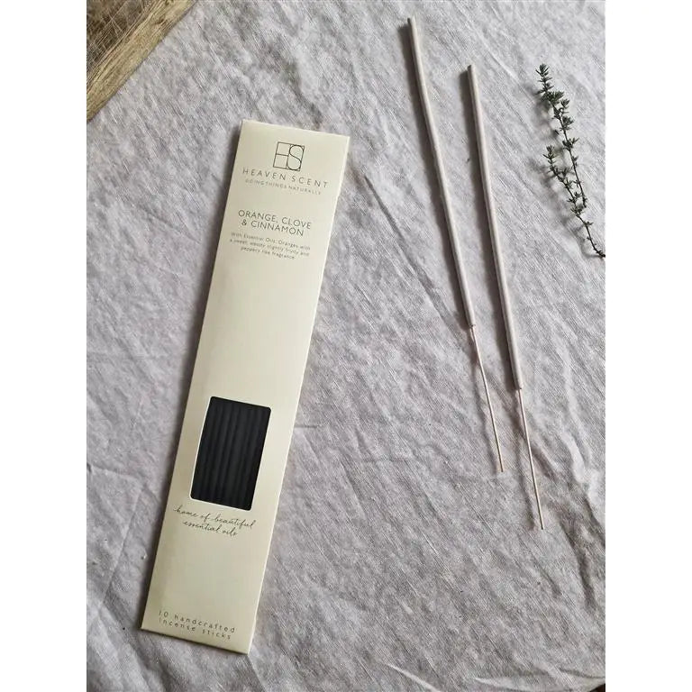 Orange, Clove & Cinnamon incense sticks beautifully presented in packs of 10 sticks.