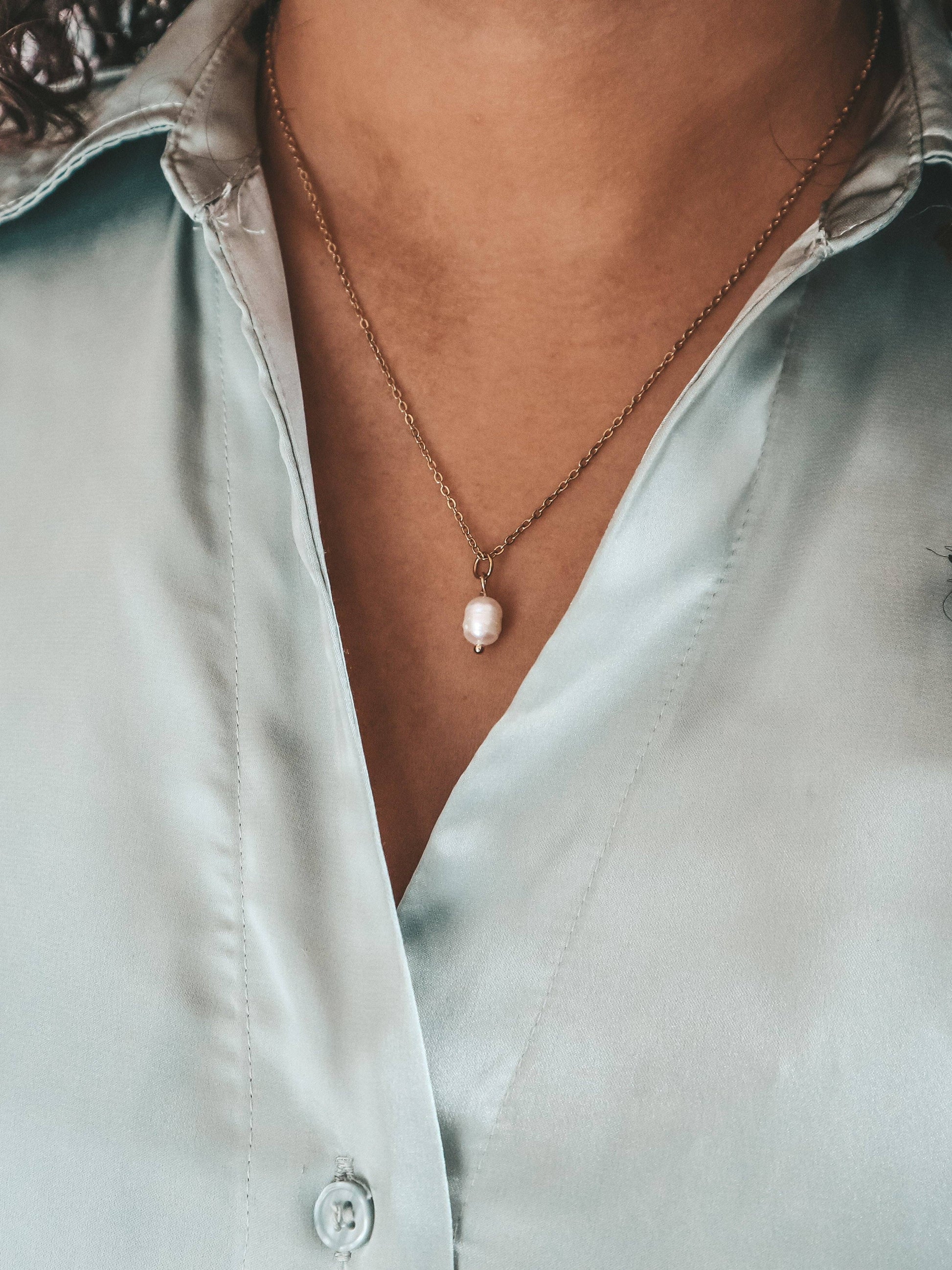 materials : fresh water pearl, 18k gold plated chain 304 stainless steel ( hypoallergenic )