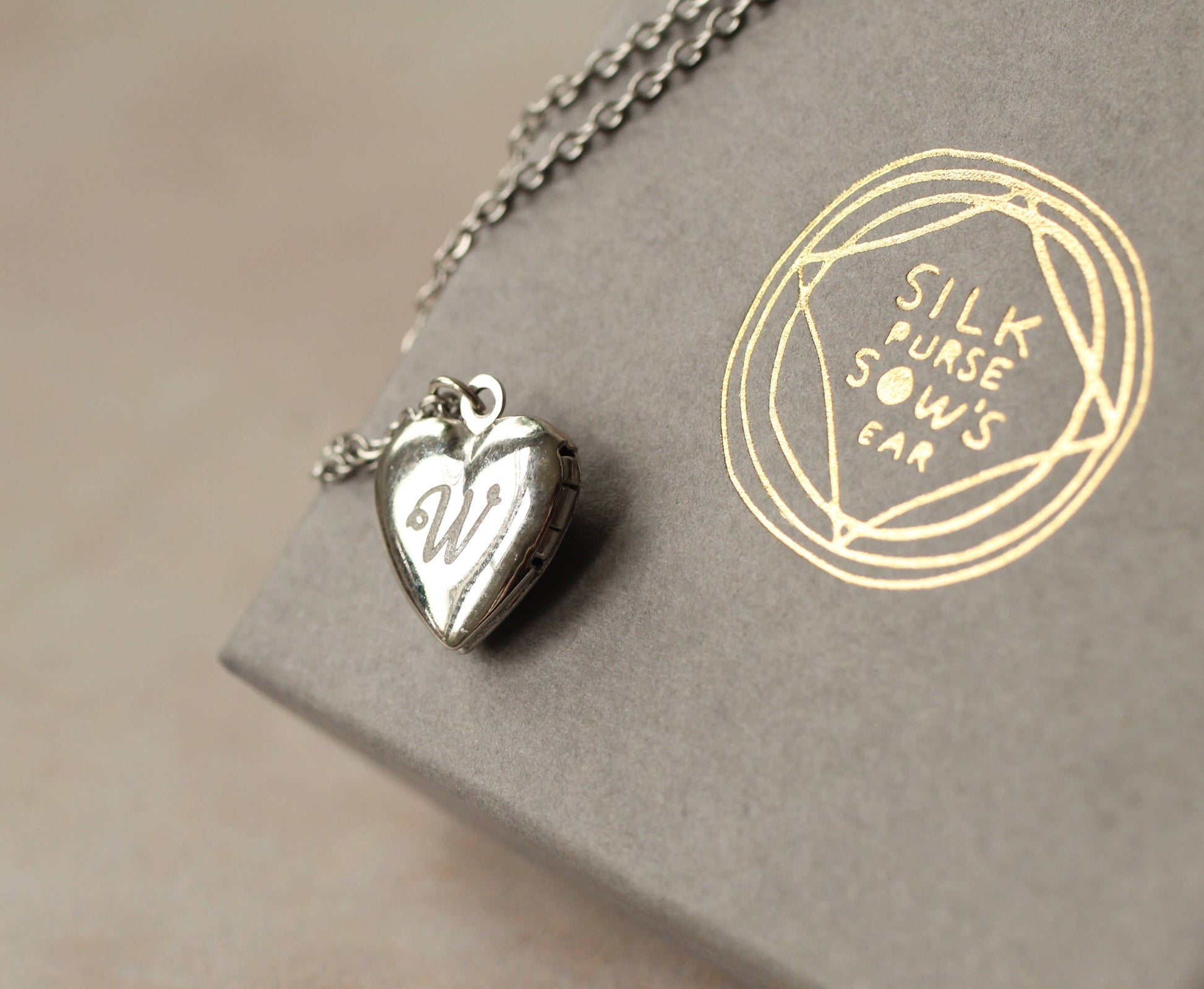 This heart locket necklace is made from silver plated brass and measures just 12mm in diameter - the size of your fingertip! Each has a perfectly working clasp with space inside for two photos or pictures to be added.